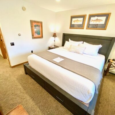 The Flathead Tribe (also known as Salish) is a part of the rich culture that surrounds northwestern Montana. Providing a taste of this region’s deep rooted history, this King bedroom features native American artwork. The newly renovated bathroom has a tub and shower, vaulted ceilings and a skylight.